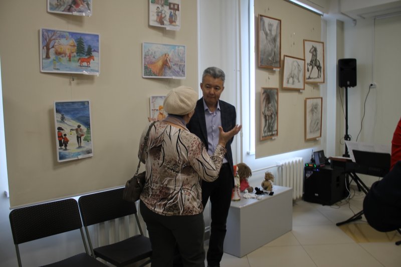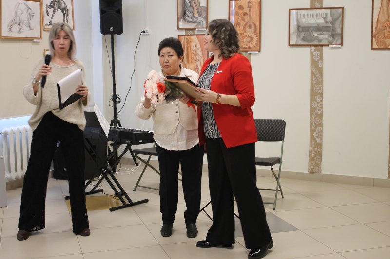 На выставку приехали директор Нукутской детской школы искусств Наталья Кузнецова, преподаватели художественного отделения Галина Чернигова, Нина Рыцева и Наталья Герова, а также учащиеся.